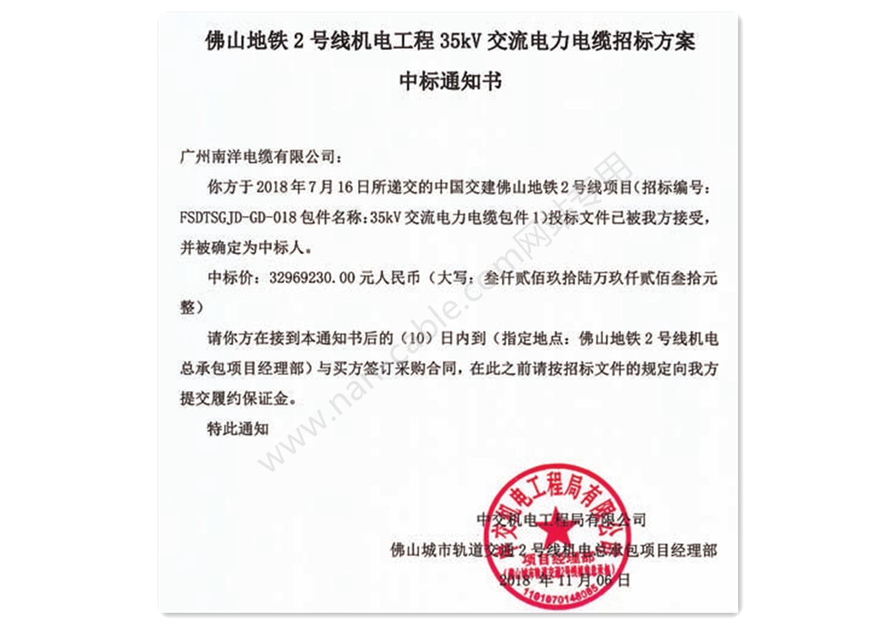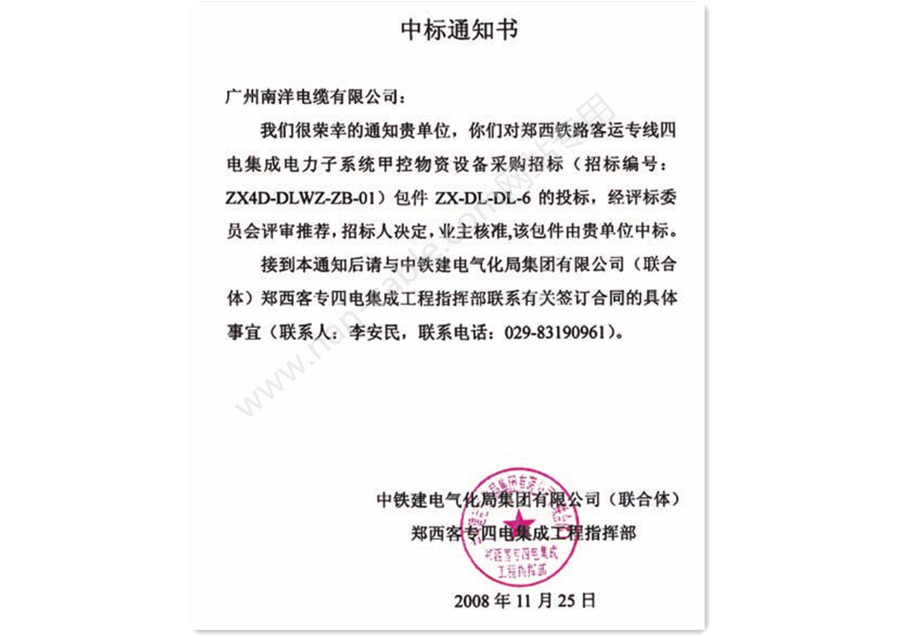 南方電(diàn)網110kV中标通知書(shū)