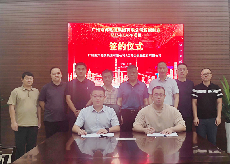 爲進一步加強企業數字化、信息化管理,提升智能制造水平,引領企業高質量發展,2022年9月20日,廣州南洋電(diàn)纜集團有限公司與江蘇金思維軟件有限公司攜手成功舉行“智能制造MES&CAPP項目”簽約儀式,雙方将通力合作,深化智能制造布局,共同打造廣州南洋電(diàn)纜集團的數字化智能工廠(chǎng)。